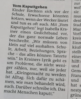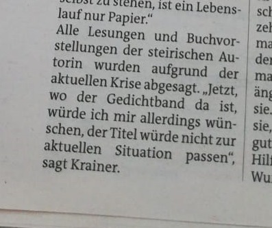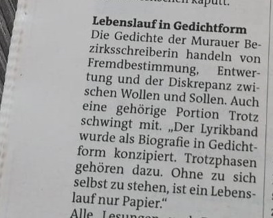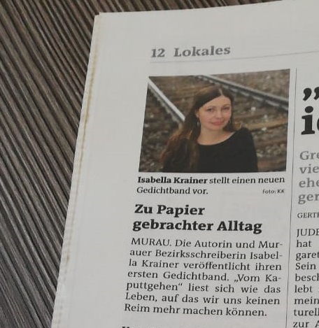 Die Murtaler Zeitung berichtet über meinen soeben erschienenen Lyrikband. Die Freude ist GROSS.