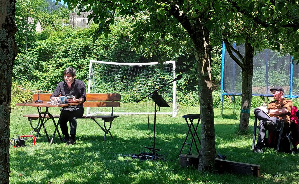 Am Nachmittag wurde ganz Hausach poetisiert. Aufgeteilt auf sechs Standorte lasen zwölf Autor*innen im Eineinhalbstundentakt. Um 18.30 Uhr waren Martin Knuth und ich dran. Er, mit Nerven aus Stahl. Ich? Ich. Dann kam der Regen.