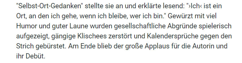 Dass mich José F.A. Oliver direkt von der Innsbrucker W:ORTE-Bühne zum LeseLenz eingeladen hat, gehört ja inzwischen zu meinen Lieblingserinnerungen. Seit 03. Juli 2021 gehört meine Hausacher Lesung am Klosterplatz auch dazu.