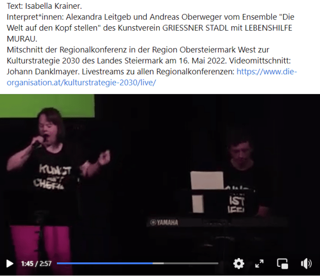 We did it. Wir waren der künstlerische Act im Zuge der Kulturstrategie 2030 des Landes Steiermark. Mit, auf & von der Bühne, Ferdinand Nagele vom GRIESSNER STADL sowie Künstler*innen der Lebenshilfe Murau.