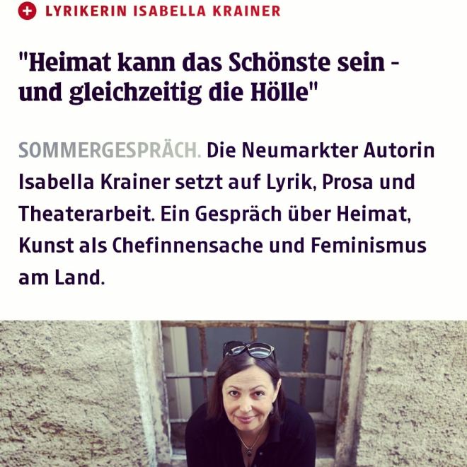 Die wunderbare Maria Steinwender von der Kleinen Zeitung hat mich interviewt. Wer wissen will, was ich über Lyrik, Heimat & Feminismus zu sagen habe, kann es HIER nachlesen. Wer es nicht wissen will, auch.
