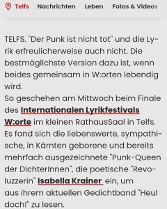 Sabine Schletterer berichtet über das grandiose Finale des Internationalen Lyrikfestivals W:ORTE in Telfs.